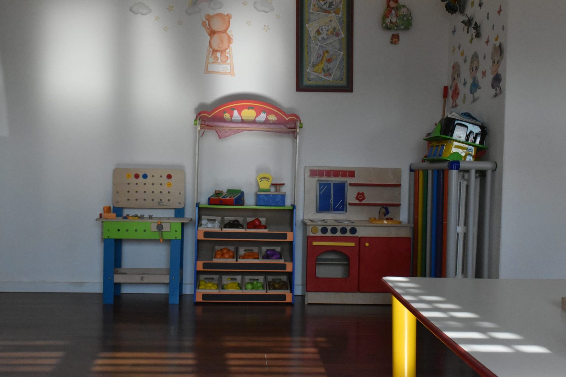 Il cuore pulsante dell’asilo è un grande salone polifunzionale, suddiviso in angoli tematici dedicati al gioco simbolico, alla lettura, alla manipolazione, alle costruzioni e alle attività creative. Ogni area è attrezzata con materiali sicuri e adeguati all’età, selezionati per stimolare la curiosità e la crescita autonoma dei bambini.