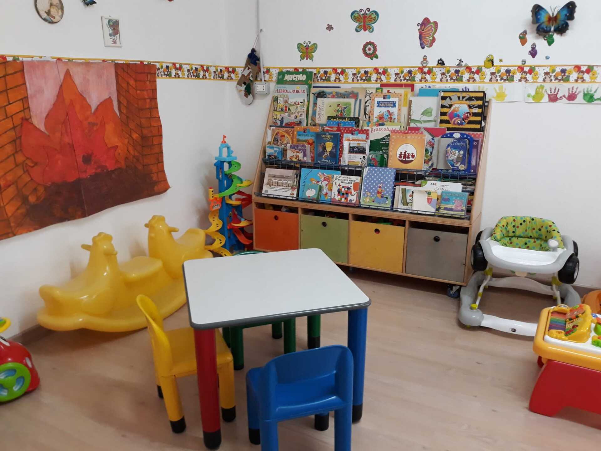 Il nido si sviluppa attorno a un ampio salone multifunzionale, suddiviso in angoli tematici dedicati al gioco simbolico, alla manipolazione, alla lettura e alle attività creative. Ogni zona è arredata con materiali sicuri e colorati, selezionati con cura per stimolare la curiosità e la fantasia dei bambini.